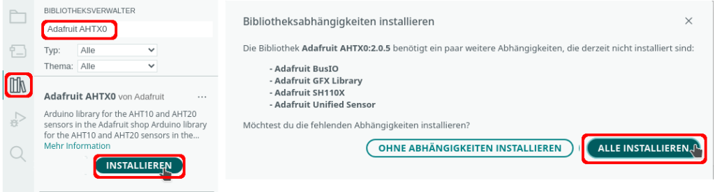 - Temperatur und Luftfeuchtigkeit mit DHT-Sensor
