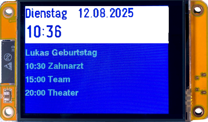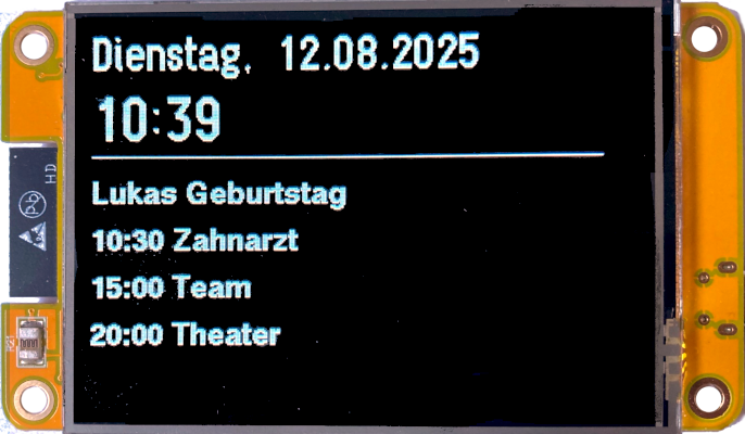 Ter­min­ka­len­der mit ESP32 mit 2,8 Zoll TFT (CYD)